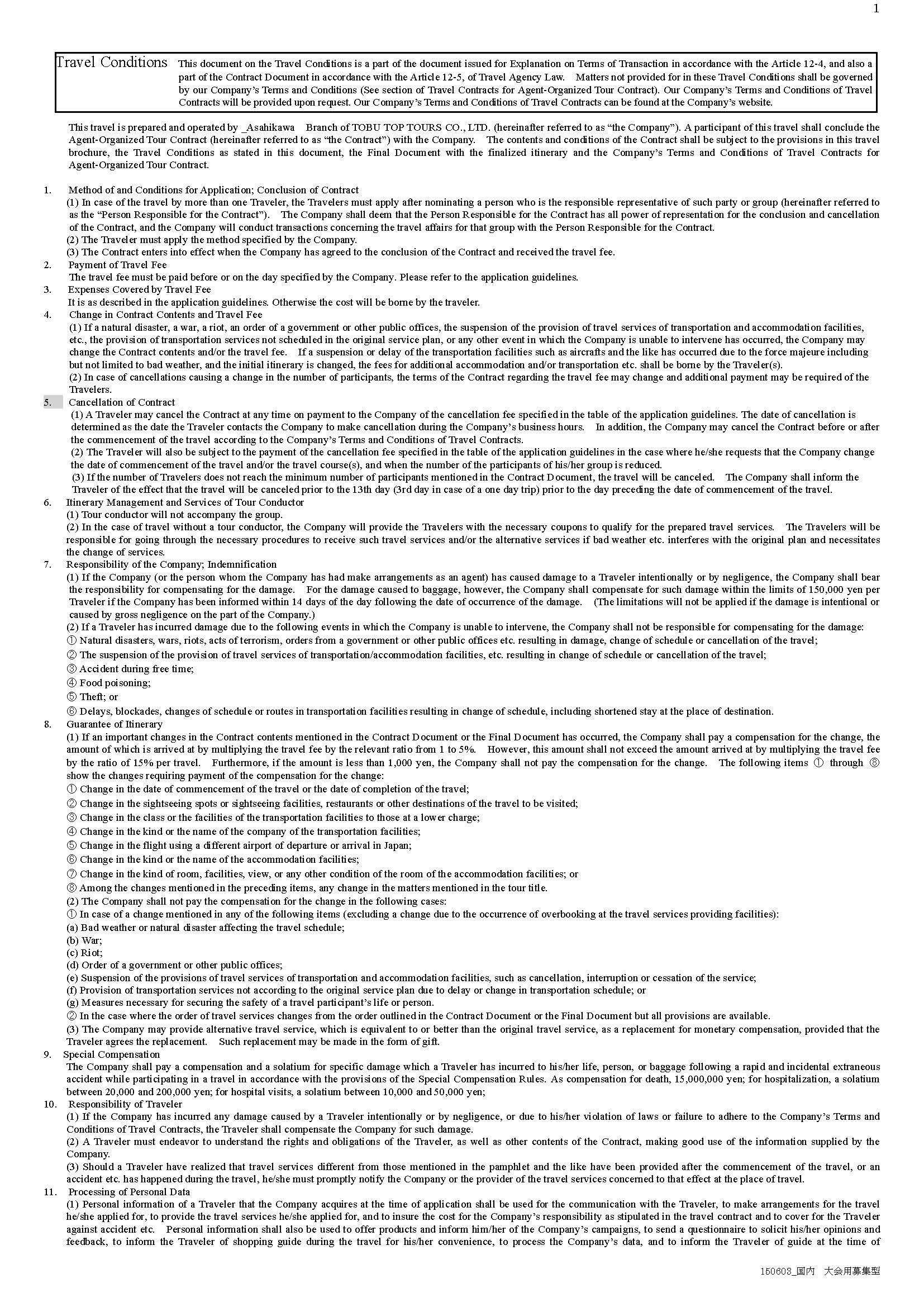 Note: The reservations for the flights & hotel rooms are made through: TOPTOUR (Travel Agent), Mr. Shigeru Takano