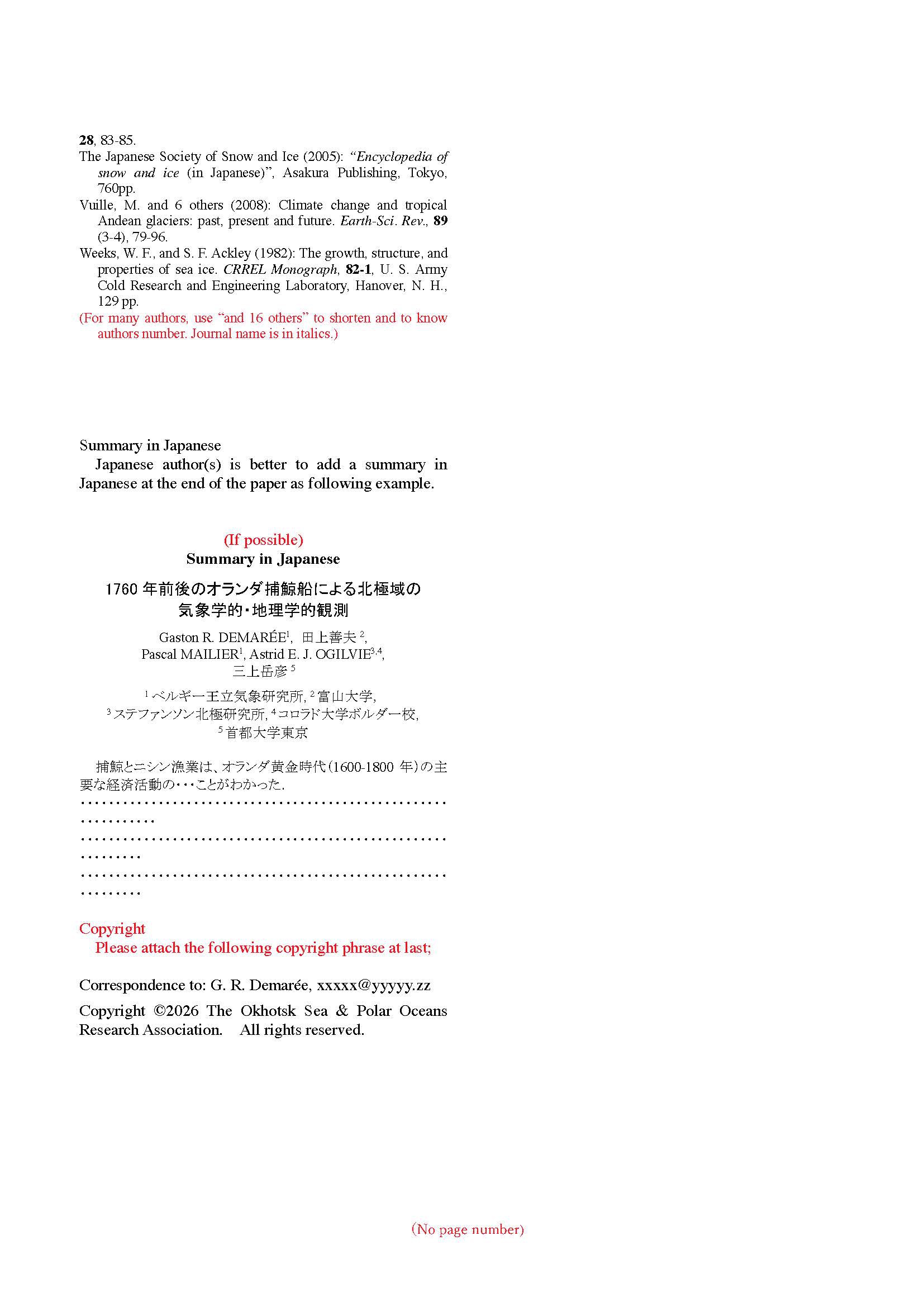 Instruction for Proceedings of International Symposium on Okhotsk Sea and Ice